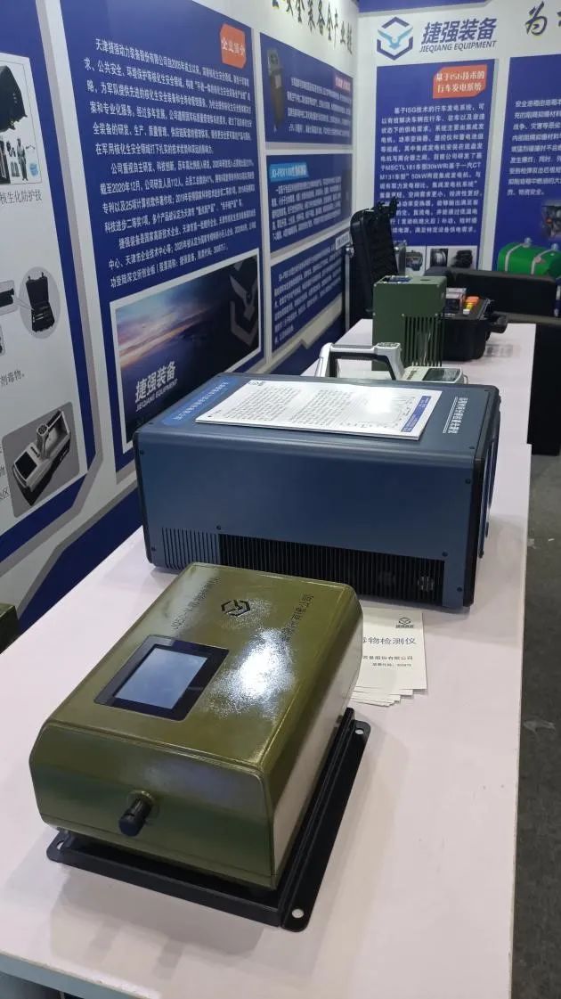 捷強裝備在此次軍事智能技術裝備博覽會實物展示了核生化防護技能訓練系列產品、JQ5C毒物檢測儀、JQ-RID01核素識別儀、生氧監測與控制裝置、JQ-PBV100生物檢測箱、生物污染物采樣箱、基于ISG技術的行車發電系統、安全油箱、痕量物質拉曼光譜遠程檢測系統等擁有自主知識產權的最新產品。